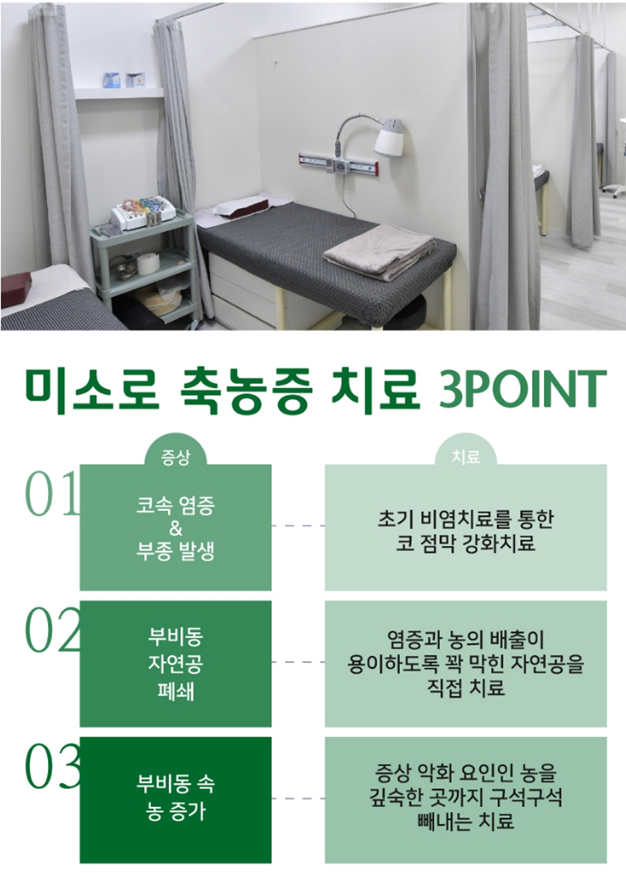 내부 온도와 습도에 따라 세균이 번식하기 쉬운 환경이 만들어지고 부종과 염증이 반복되면서 악순환이 계속될 수밖에 없습니다. 빈 공간에 쌓인 분비물을 배출시키는 치유 과정이 필요하며, 이를 통해 불쾌감을 완화시키는 치료 과정으로 볼 수 있습니다.