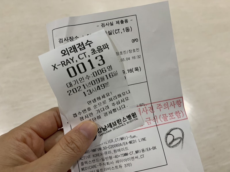 그 다음 코스는 CT에서 영상의학과에 가서 접수. 4층에 가서 찍으라고 했다.