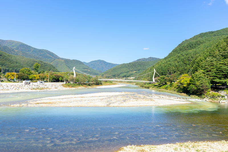 悲しい表情の乙女像と切なく聞こえる旌善アリランの歌は、しきりに私の足を止めます。 しばらくの間、ぼんやりと川辺に立って悠々と流れる川の水をぼんやりと眺めながらあざをしてみたりもしました。