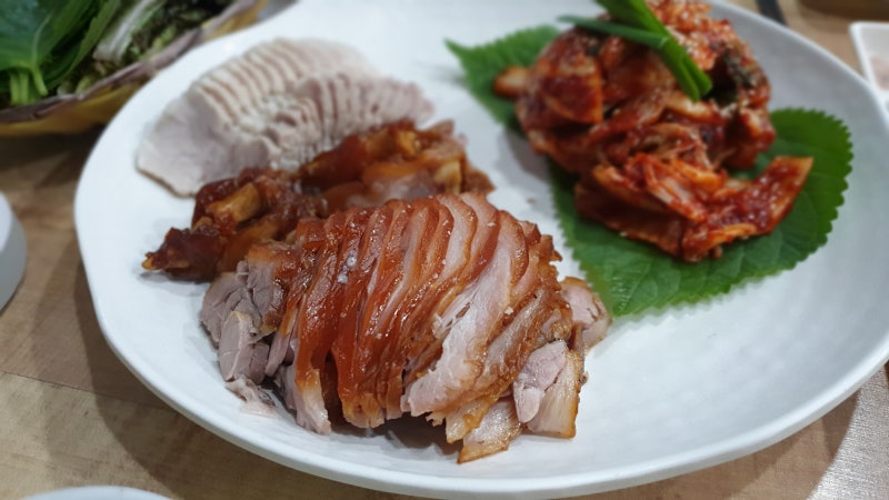 나는 우선 밥 한 그릇을 주문하고 보쌈김치를 얹어 즐깁니다.시원하고 맛있는 보쌈김치! 밥이랑 먹어도 너무 맛있어요.