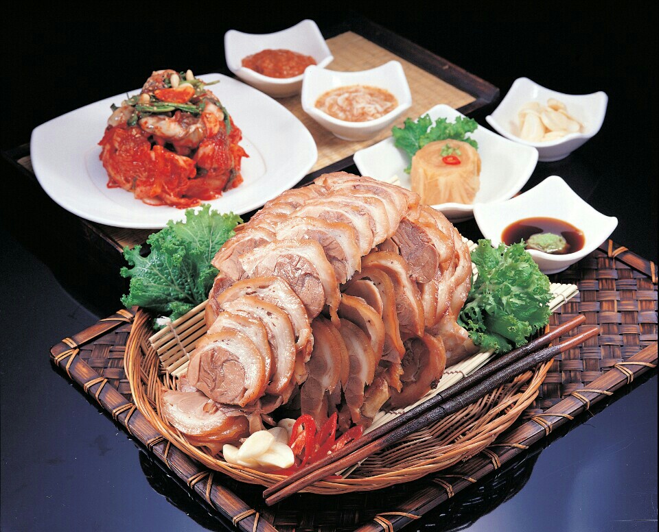 건강에 좋은 마늘이 듬뿍 토핑된 부드러운 마늘 보쌈! 그리고 무말랭이가 적당히 곁들여진 보쌈김치까지~ 정말 맛있어 보이네요.