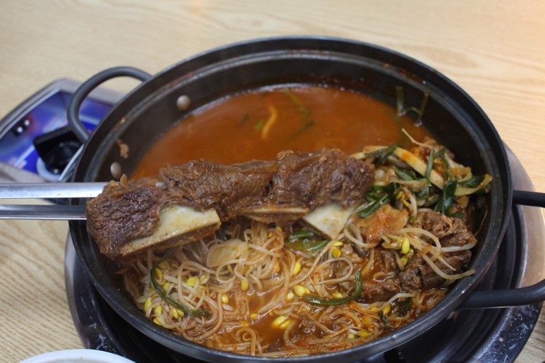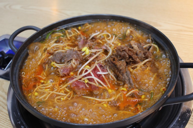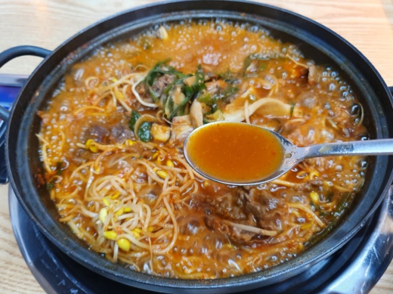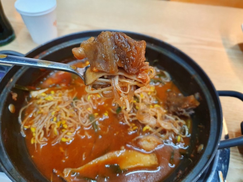 밑에콩나물,버섯,야채,갈비,당면이들어있었습니다.보글보글 끓으면직원이 알아서잘만들어주기때문에비주얼을보고놀랄필요없습니다.