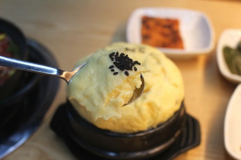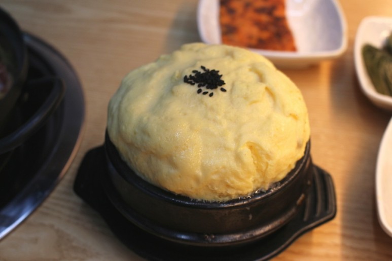 먼저 나온 지글지글 뜨거운 뚝배기에 넘쳐흐를 듯이 담겨오는 계란찜! 뜨겁고 맛있을 것 같아요~