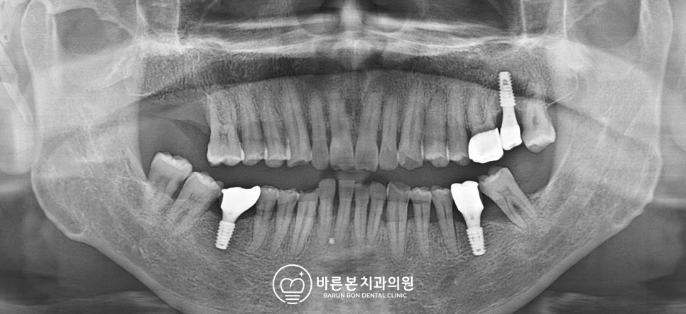 전체적으로 자연치가 소실된 부분이 많고 상태가 좋지 않아 발치 후 임플란트 치료가 필요했습니다.
