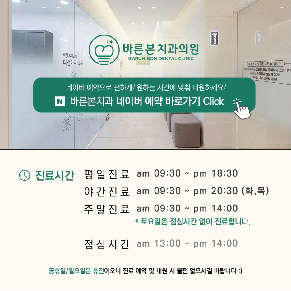 당뇨병이나 고혈압 등 전신질환으로 치료가 망설이는 경우 내원 후 검사를 통해 치료받기를 바라며, 더 궁금한 점이 있거나 상담이 필요한 경우 댓글 또는 원내로 문의하시기 바랍니다.^^