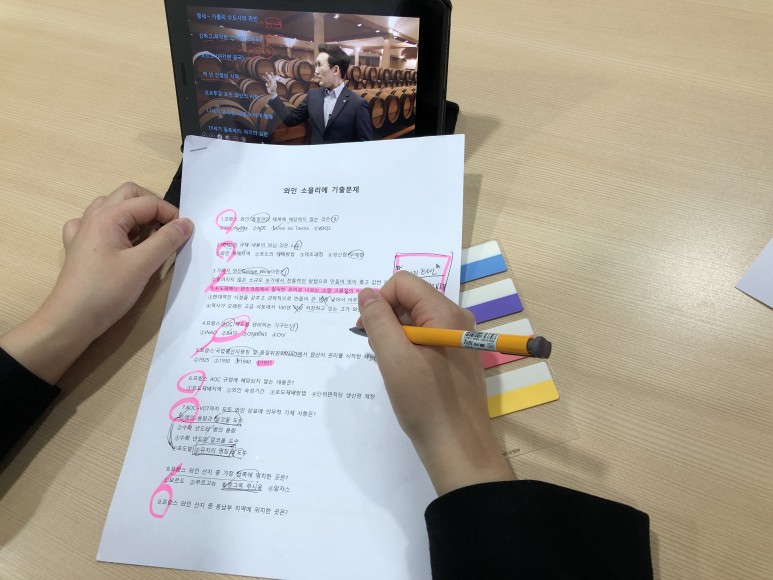 개인적으로 암기를 조금 약한 편이지만 교수님께서 쉽게 외울 수 있는 방법을 함께 제시해주셔서 쉽게 공부할 수 있었습니다. 사실 와인이라는 이름이 너무 독특하고 어려워서 기억하기가 쉽지 않았거든요. 그런데 교수님은 그 나라별 언어를 먼저 생각하면서 연관지어 외우면 괜찮다고 하셨기 때문에 바로 적용하면서 학습했습니다.