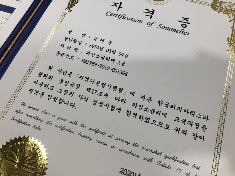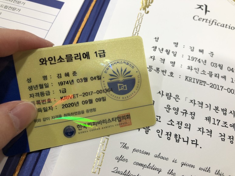 그래서 특별한 날에 지인들에게 선물을 하거나 저에게 추천해달라고 할 때마다 한번씩 해주면 제가 추천해준 와인이 너무 맛있었다고 이야기를 하는 겁니다. 그래서 이번 기회에 이 재능을 좀 더 살려 소믈리에까지 해보는 게 어떨까 생각했습니다. 그 길에서 와인 소믈리에 자격증을 취득할 수 있는 길을 알아봤습니다.