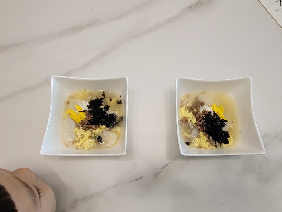 조식 메뉴 ‘떡국’ 옆에 돈희 얼굴 강아지 같아.너무 귀엽다.
