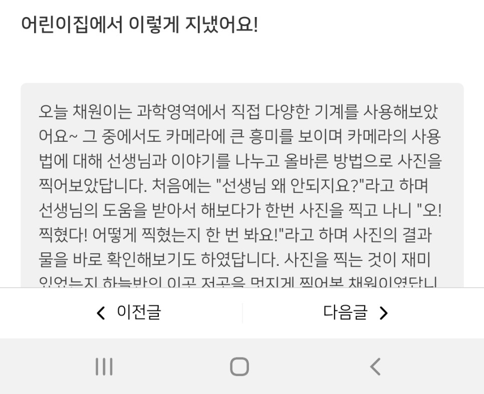 이날 알림장을 보고 깜짝 놀란 이모와 채니 생일선물을 상의하면서 카메라로 정한 날인데 한번도 카메라 이야기를 한 적이 없는데… 연락처에 카메라 사진이 나와서 너무 놀랐던 기억이…
