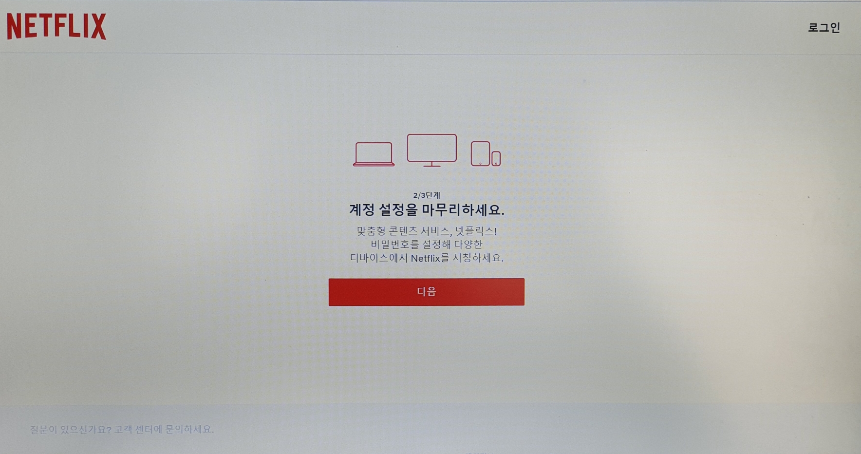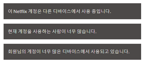 선택 요금제에 따라 넷플릭스를 동시에 시청할 수 있는 기기의 수가 다릅니다.호환 기기를 2개 이상 사용하시나요? 언제든지 기기를 전환할 수 있으며 동시 접속 가능한 인원은 지정되어 있지만 계정에 접속할 수 있는 기기의 수를 제한하지 않으므로 새 기기를 구입하거나 다른 기기에서 시청하려면 해당 기기에서 넷플릭스에 로그인하십시오.