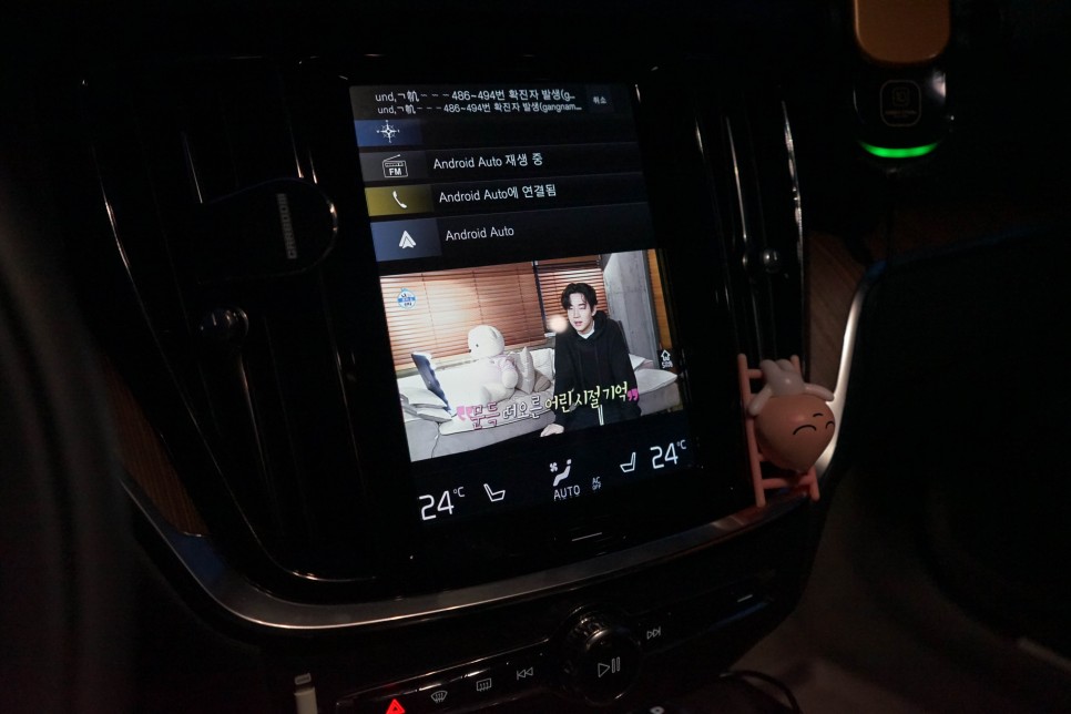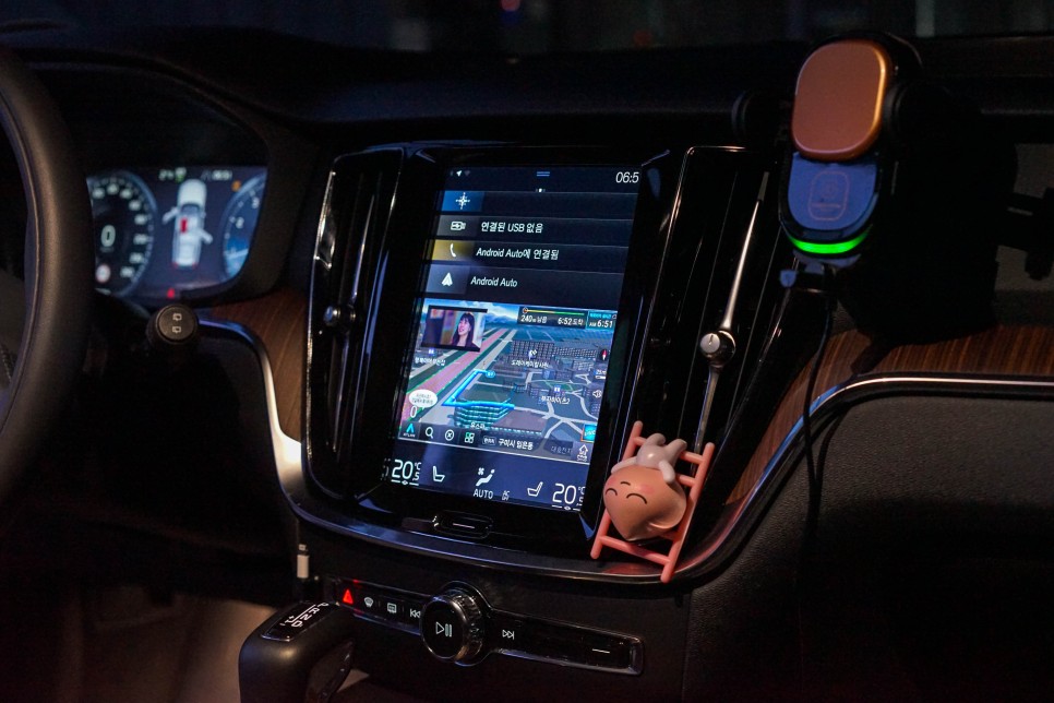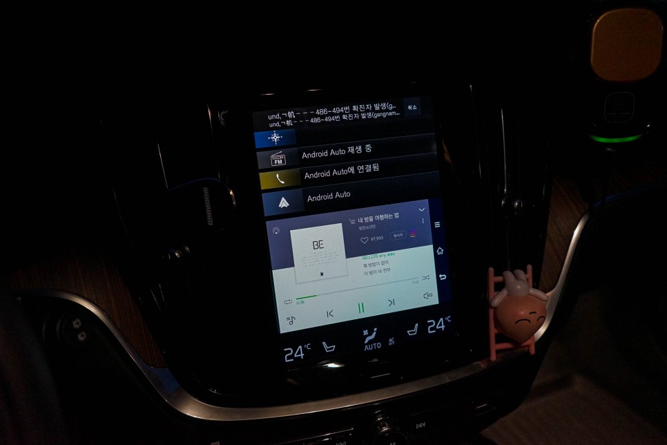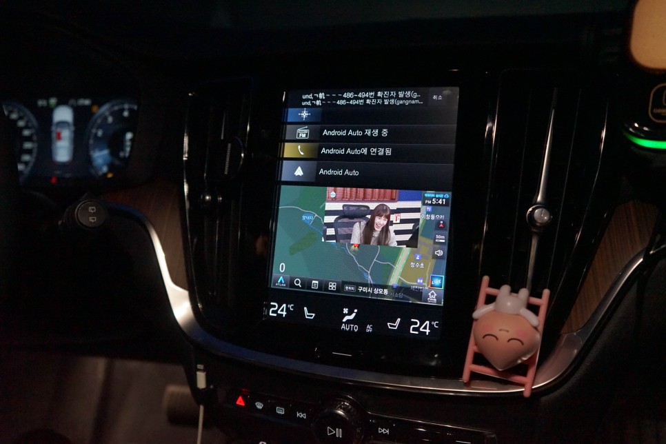 차에 시동을 걸고 나서 파인도 라이브 내비게이션 로딩 그리고 테더링 완료까지 1분 이상 걸렸습니다. 버퍼링이 있네요. 이것이 볼보차와의 호환성 문제인지, 하드웨어 스펙 상의 문제인지 로드할 때까지 그다지 쾌적하지는 않을 것 같습니다.