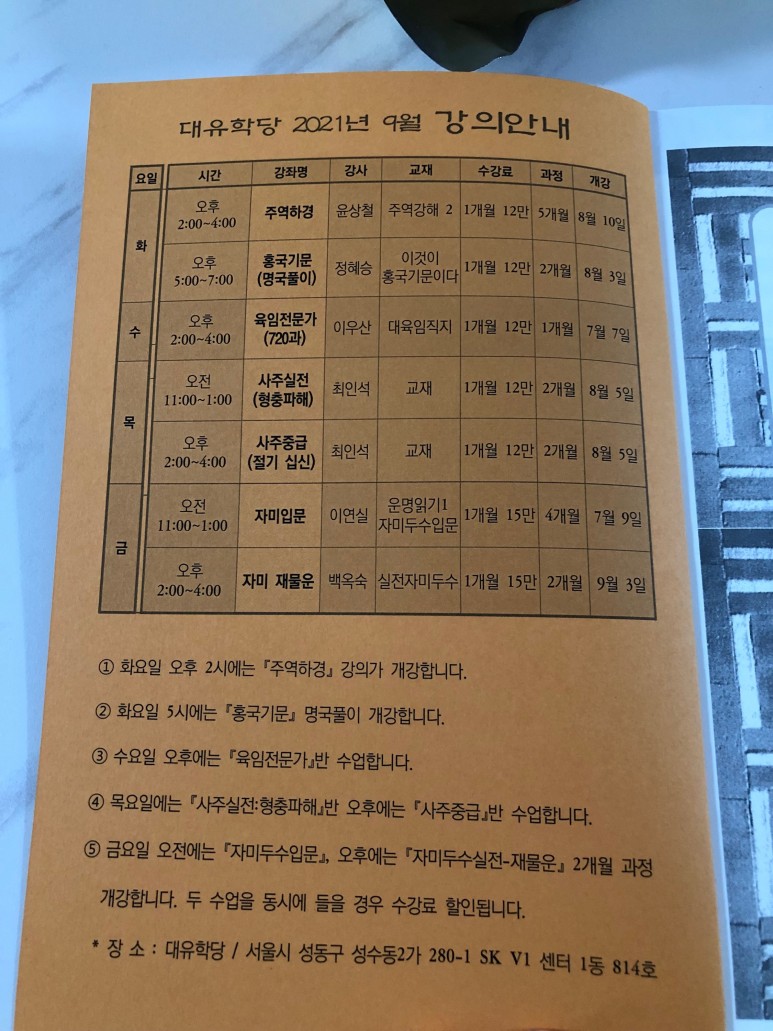 책자를 보면 수업도 진행하고 있던 동생 여자친구가 사주팔자를 공부했는데 나도 기회가 되면 한번 들어보고 싶었다 내 친구 리버 씨도 종교의 격차를 극복하고 사주팔자를 조금 공부해서 잠깐 추억에 잠겨본다