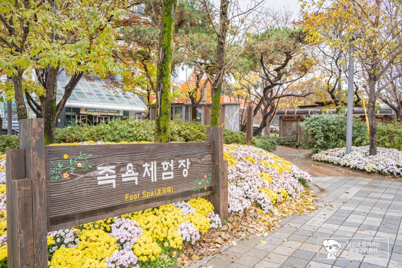 대전의 겨울 볼거리인 유성온천공원 족욕체험장도 리스처럼 꾸며져 있어 따뜻한 족욕체험을 하며 크리스마스 분위기를 한껏 즐길 수 있었습니다.