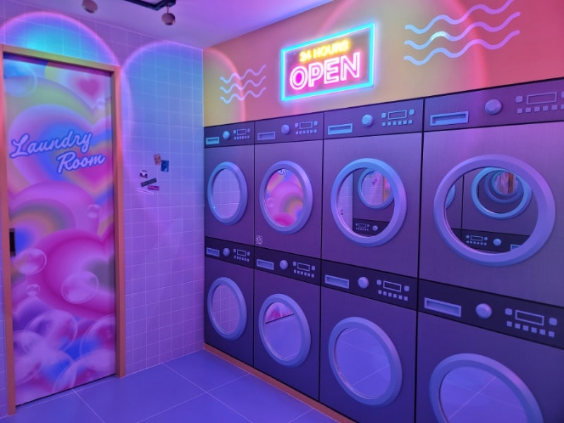 사진제공 트래블리더 14기 존 예나 베팅룸과 거울 세탁기가 진열된 워싱룸은 조명으로 공간의 긴장감을 높이고 몰입감을 더해줍니다.