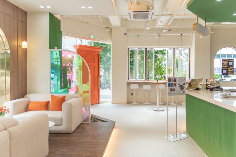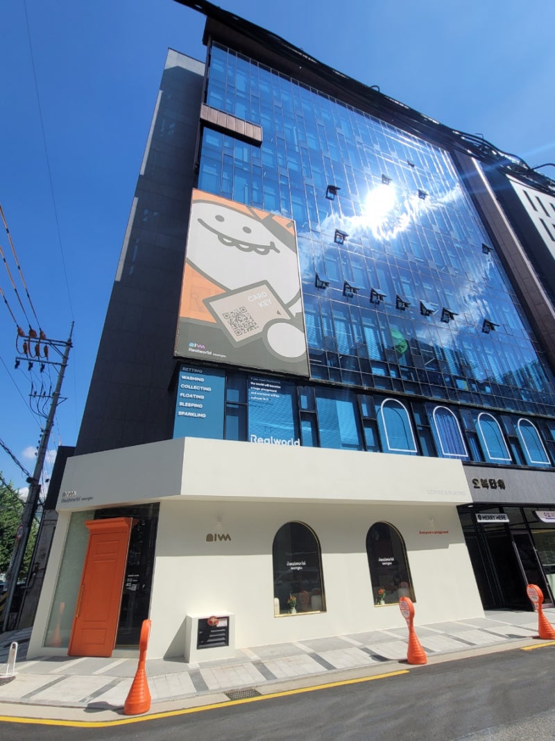 첫 몰입 경험 플랫폼인 리얼월드 최초 오프라인 매장 ‘리얼월드 성수’는 지난 8월 서울 성수동에 새롭게 문을 열었습니다. 미스터리와 몽환적인 컨셉으로 카페와 호텔을 결합한 신개념 몰입형 체험공간입니다. 주황색 문을 통해 신비로운 공간 속에서 다양한 콘텐츠가 펼쳐지고 있습니다.