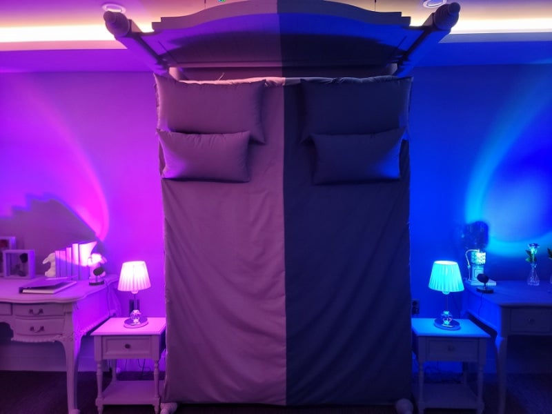사진제공 트래블리더 14기 박수빈 독특한 분위기의 호텔 객실인 슬리핑룸은 보라색과 파란색 공간이 구분되어 있습니다. 공간 곳곳에는 선명하고 화려한 색감의 소품들이 전시되어 있습니다. 레스토랑과 같은 스파클링 공간에서는 고소한 와인의 진실을 찾으며 게임 중 잠시 휴식을 취할 수도 있습니다.