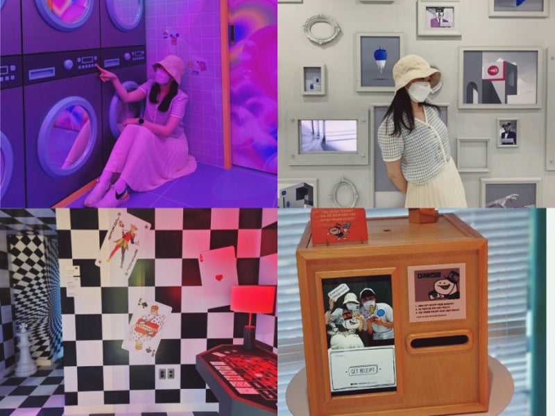 사진제공 트래블리더 14기 박수빈 2층에서 가장 인기 있는 플로팅룸에서는 푸른 물결이 일렁이는 스크린 앞에서 기념사진을 남길 수 있습니다. 컬렉션 룸에서는 갤러리를 연상시키는 다양한 작품들이 전시되어 있습니다. 양쪽에 거울이 설치되어 있어서 미로 속으로 들어온 것 같은 느낌이 들 수도 있습니다.