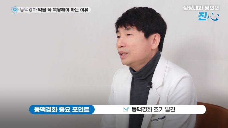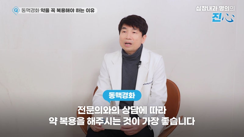 重要なのは動脈硬化をもう少し早く発見し、薬を使うことで動脈硬化の進行を最大限抑制し、動脈硬化斑破裂などの合併症を防いで脳卒中、心筋梗塞などの生命を脅かす重大な合併症を予防することです。もう一度言いますが、血管をきれいにしてくれて血管を元に戻す薬はまだこの世に出ておらず、多くの医学者がそのような薬を作るためにまだ多くの努力をしています。しかし、スタチンのような薬剤のように動脈硬化の進行を最大限防ぐ薬を使用しながら、高血圧、糖尿などの動脈硬化を引き起こす疾患に対する治療を行い、良い生活習慣を維持すれば健康な血管状態を維持できるでしょう。もし、これと関連してご不明な点がございましたら、「インターネット検索」よりは近くの内科でも訪問して専門知識を持つ医師に相談することを積極的にお勧めします。また、「私も動脈硬化が進行しているだろうか?」気になる場合は、いつでも下記のカカオトーク相談にお問い合わせください。