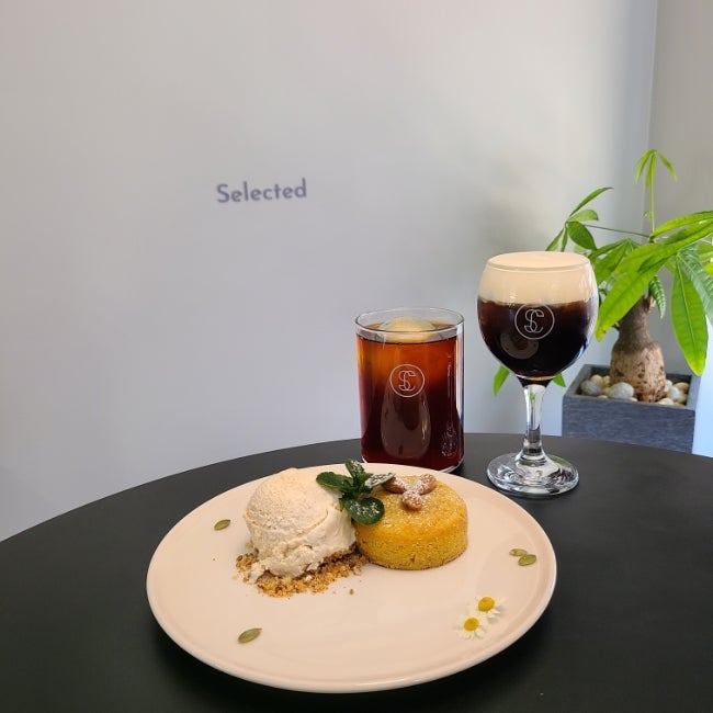 셀렉티드 커피 앤 디저트라는 달콤한 네이밍 가게였습니다.SNS에서 우연히 발견한 참이었는데 인테리어도 그렇고 디저트 비주얼까지 한눈에 관심이 생겼어요.친구들과 많이 기대하며 다녀왔습니다.