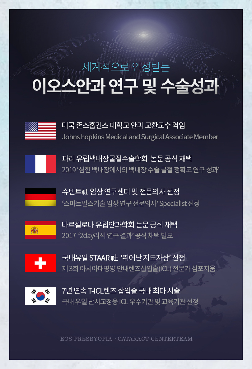 이처럼 이오스는 라식, 라섹, 렌삽, 백내장 등의 안과 분야에 대한 연구를 멈추지 않았기 때문에