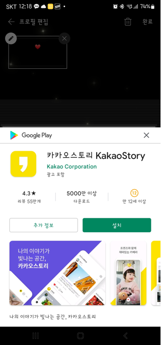 저는 카카오스토리를 사용하지 않기 때문에 설치화면에 연결된 화면입니다.