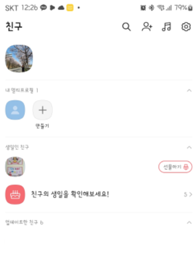 개인적인 사진/동영상을 보여주고 싶지 않은 친밀도가 낮은 사람은 멀티프로필로 관리합니다.