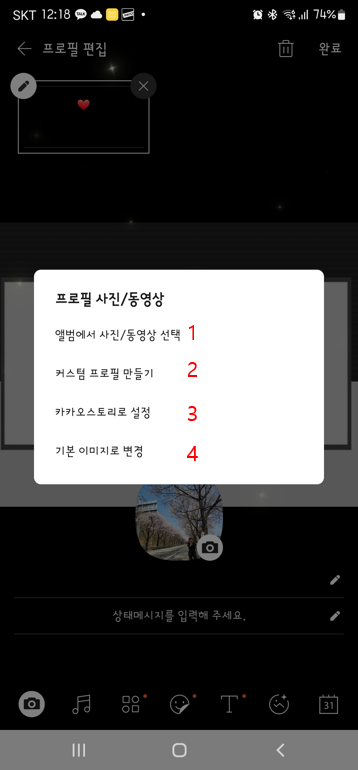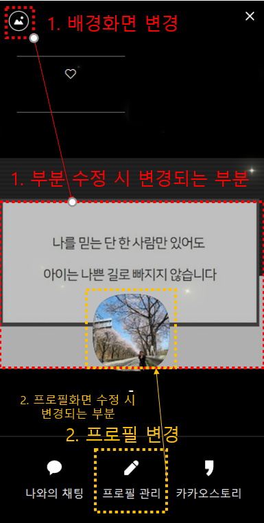 카카오톡 프로필 적용부분 3. 프로필부분 클릭데모와 같은 화면이 나타납니다.