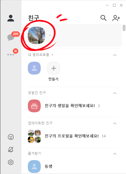 프로필 부분 클릭2 빨간 동그라미 부분 클릭
