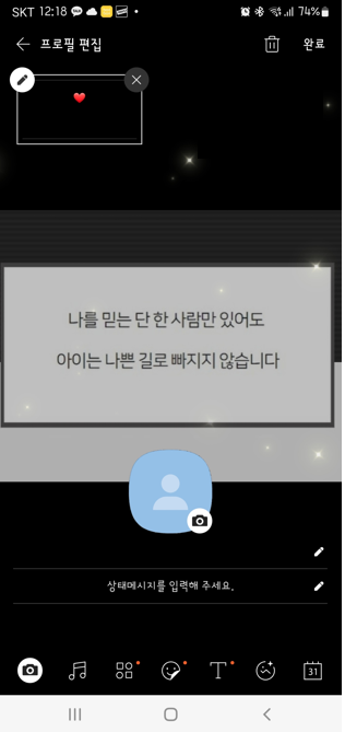 저는 이미 프로필 화면을 설정하고 어느 부분을 클릭하면 어디에 적용되는지 예를 들어 화면으로 보여드리겠습니다.