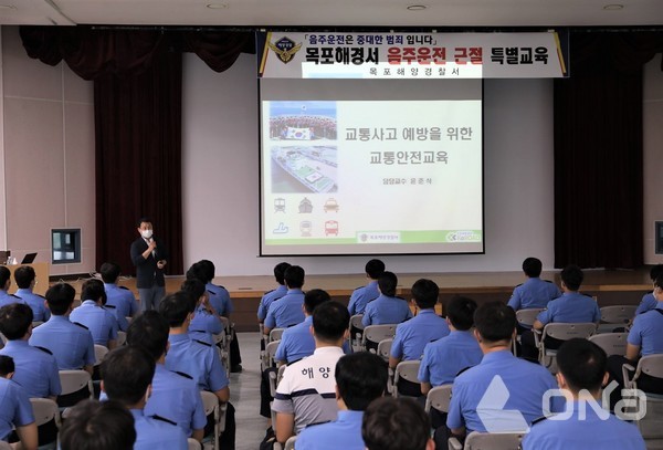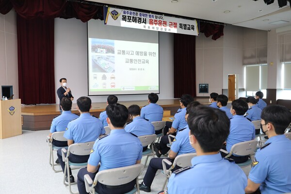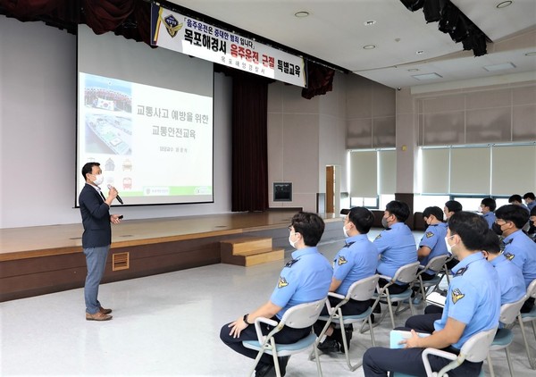[한국검찰일보 오상택 기자]= 목포해양경찰서(서장 이정욱)는 30일 오후 청사 대강당에서 직원들을 대상으로 음주운전 예방 특별교육을 실시했다고 31일 밝혔다. 목포해경은 코로나19 사회적 거리두기 해제로 각종 모임 등 외부활동이 많아지고 추석 연휴가 다가옴에 따라 음주운전에 대한 경각심과 안전의식을 높이기 위해 예방 차원에서 교육을 실시했다. 이번 특강은 소속 직원 130여명이 참석한 가운데 도로교통공단 안전교육부(광주·전남지부) 윤충식 교수의 특강으로 진행됐다. 이 자리에서 윤 교수는 최근 음주운전으로 인한 교통사고와 피해사례를 소개하며 음주운전의 심각성에 대한 이해로 직원들의 경각심을 일깨웠다. 이날 교육을 받은 이정훈 경사는 “이번 교육을 통해 음주운전에 대한 위험성을 다시 한번 느낄 수 있었다”며 “국민에게 모범이 되고 청렴한 해경이 될 수 있도록 음주운전 근절에 앞장서겠다”고 말했다.