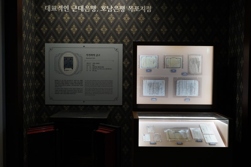 옛 호남은행 역사실에서는 옛 호남은행에 대해 자세히 알아볼 수 있습니다.한국인이 설립 운영한 민족은행이었다는 점에서 가치가 높은 근대문화유산임을 배우고 알 수 있습니다. 목포의 대중음악과 가수들.