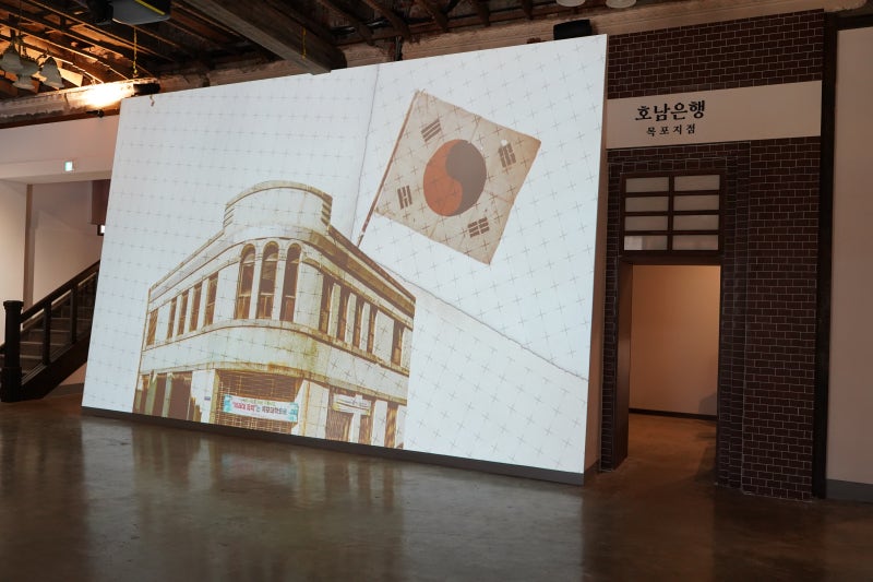 입구를 들어서면 대화면을 통해 근대역사문화공간과 옛 호남은행 목포지점에 대한 영상을 시청할 수 있습니다.옆에는 호남은행 목포지점 역사실과 모던타임스 관람실이 있어 근대로 시간여행을 떠난 것 같습니다.