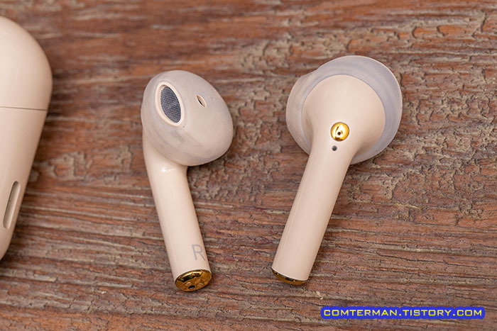 위에서 보여드린 빵빵하게 구성된 윙팁으로 제 귀에 딱 맞는 핏감을 주는데 저는 개인적으로 아무것도 안 쓰고 귀에 끼우는 게 편했어요.