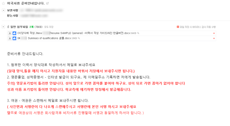 에이전시에서 처음 메일이 오자마자 영문으로 이력서를 작성해서 보내라고 해서 처음에는 깜짝 놀랐어요.