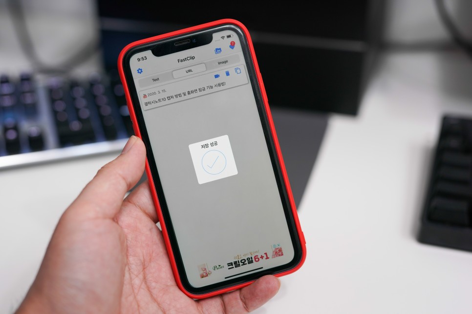 미리 설치한 FastClip을 실행하면 상단에 TEXT, URL, Image 이렇게 세 가지 카테고리가 나타납니다. URL에 들어가면 방금 복사한 링크가 자동으로 하단에 표시됩니다. 해당 콘텐츠 제목을 클릭하면 하단에 팝업창이 뜨며 비디오 저장을 클릭하면 원하는 영상을 바로 아이폰에 저장할 수 있습니다.