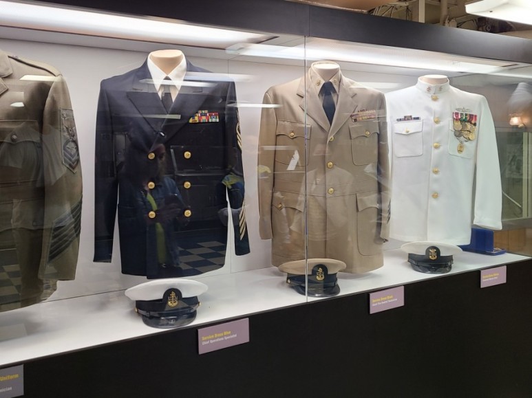 오른쪽에 네모난 배지와 둥근 배지가 많을 정도로 직위가 높다고 합니다.