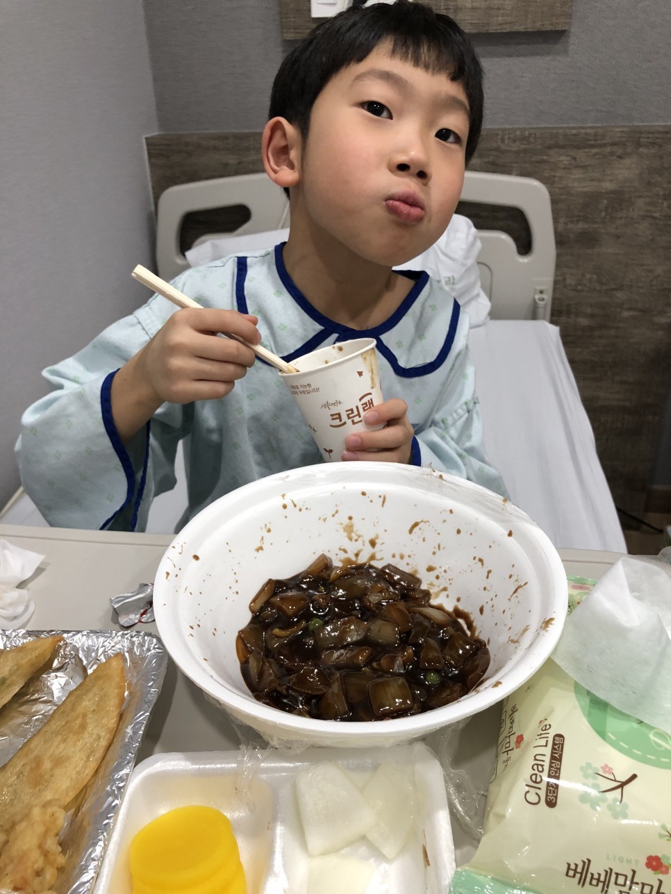 수술 전 입원했다가 마지막 특식으로 짜장면을 순살당하는 아들