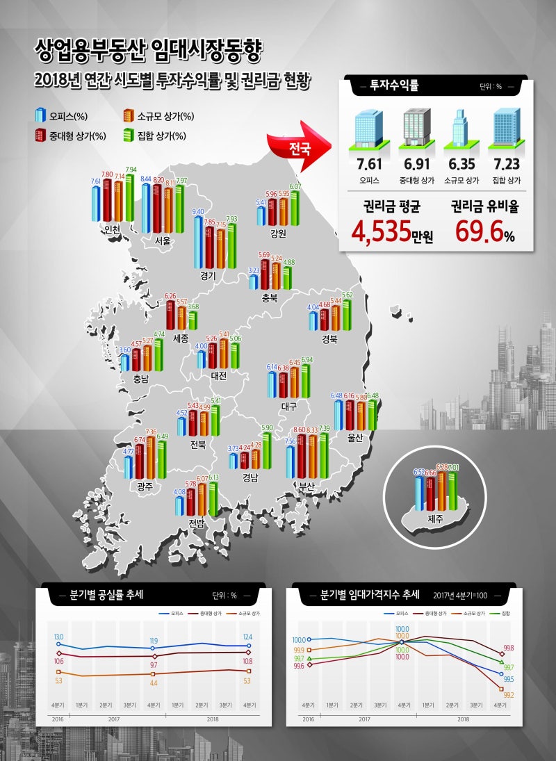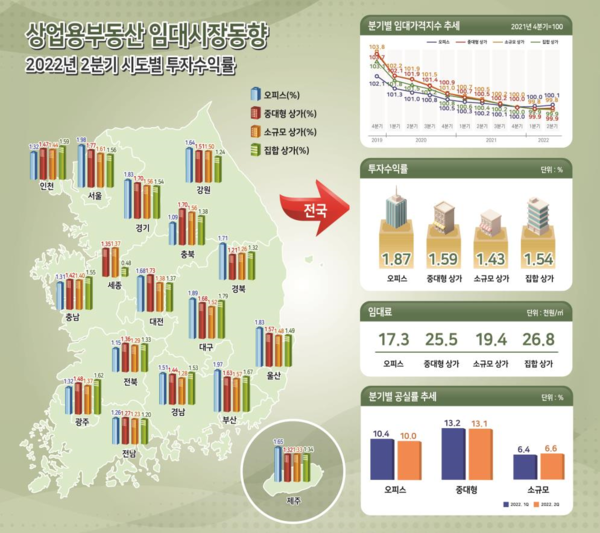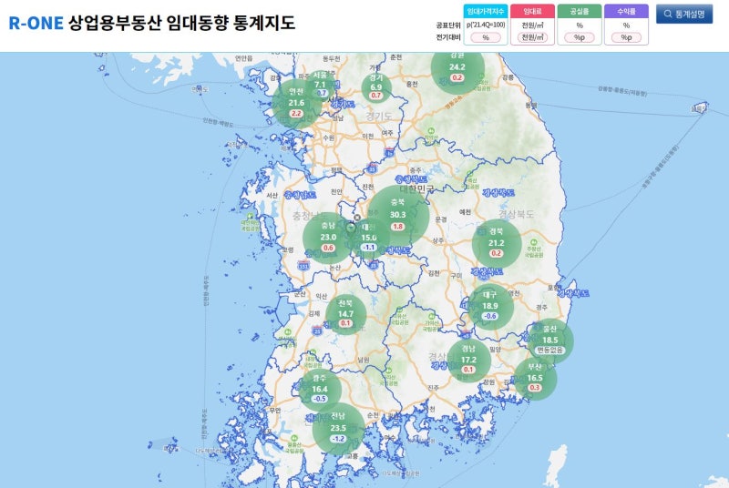 [상업용 부동산 임대동향 통계지도] 상가 임대가격지수, 임대료, 공실률, 수익률 정보
