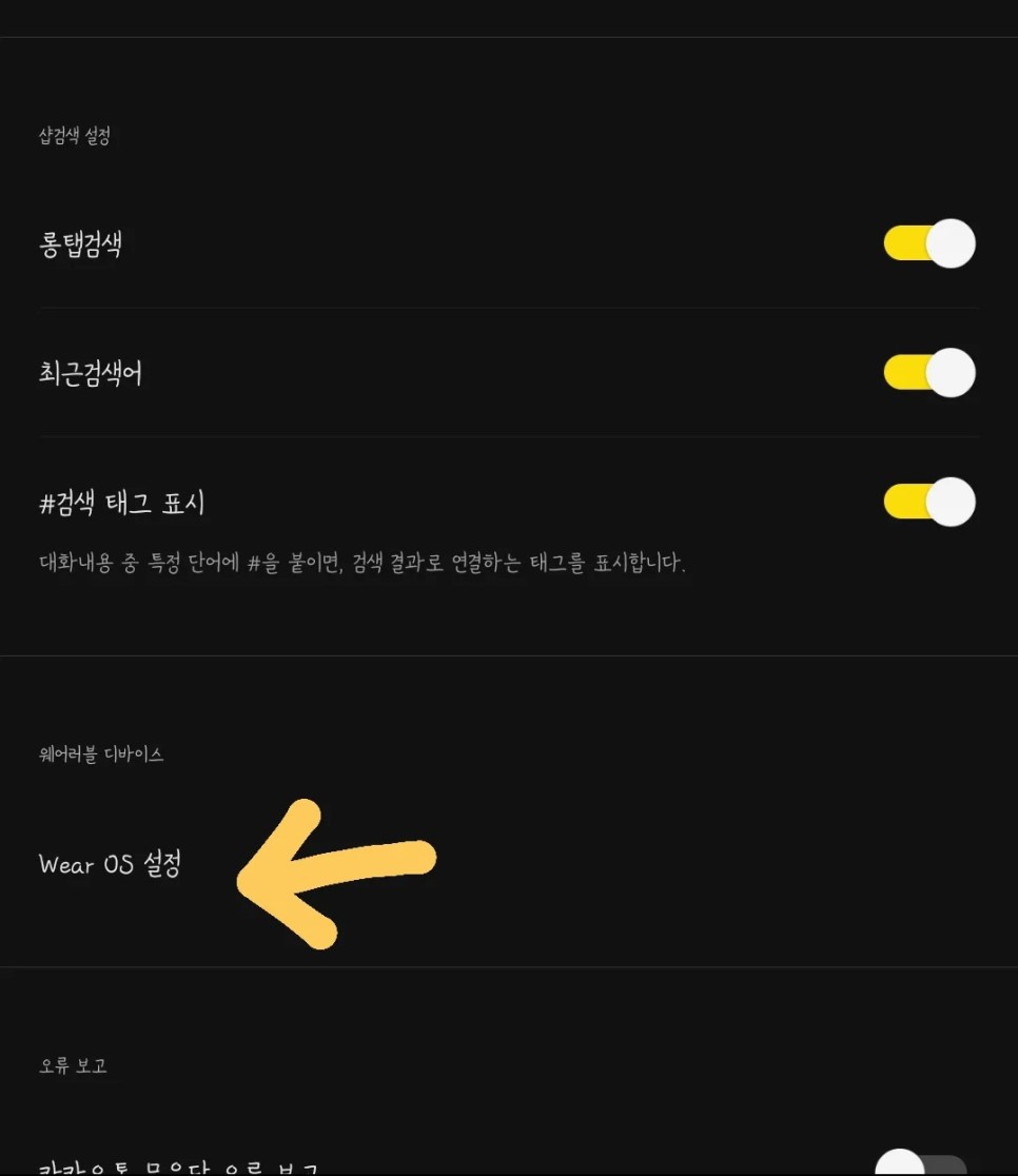 카카오톡 설정 ➡ 기타 ➡ Wear OS 설정 ➡ Wear OS 카카오톡 사용 체크하면 끝!