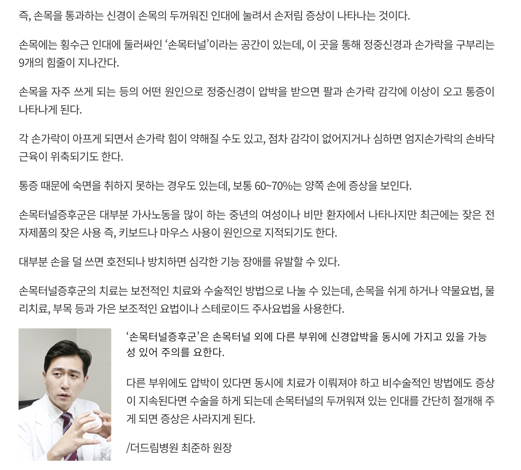 #손목터널증후군 #손목터널증후군치료 #손목터널증후군치료방법 #손목터널증후군증상 #손목터널증후군원인