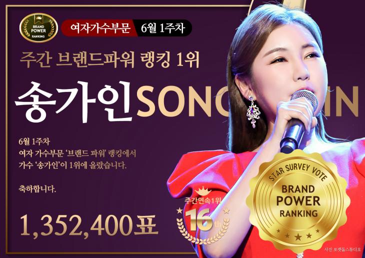 두 번째 곡은 가인이어라입니다.송가인 하면 떠오르는 가인이어라를 모티브로 한 곡입니다.가인은 송가인의 이름이자 운명처럼 만난 사랑하는 사람을 의미한다고 합니다.송가인의 상큼한 가창력과 청량감을 주는 곡이래요.한번 들어보세요.보통 노래 제목에 본인 이름이 들어가는 경우는 거의 없는데 송가인을 대표하는 곡으로 딱 맞아요.얼마나 신드롬을 일으켰는지 알 수 있는 부분이었어요.미스터트롯이 나오기 전까지는 역시 송가인이 인기였어요. ~~