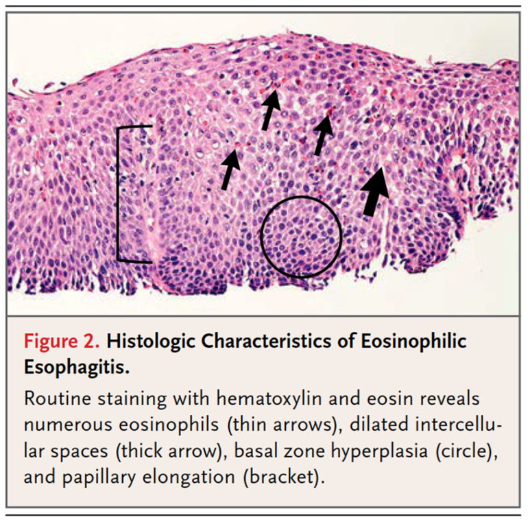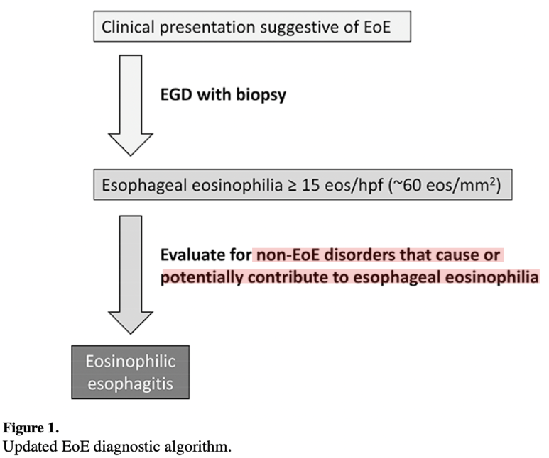 즉, 식도 관련 증상이 있을 경우 내시경을 실시하고 조직검사에서 HPF당 15개 이상의 호산구가 있을 경우 식도 내에 호산구를 증가시키는 질환이 모두 제거된다는 가정 하에 호산구 식도염이라는 진단명을 붙일 수 있습니다.