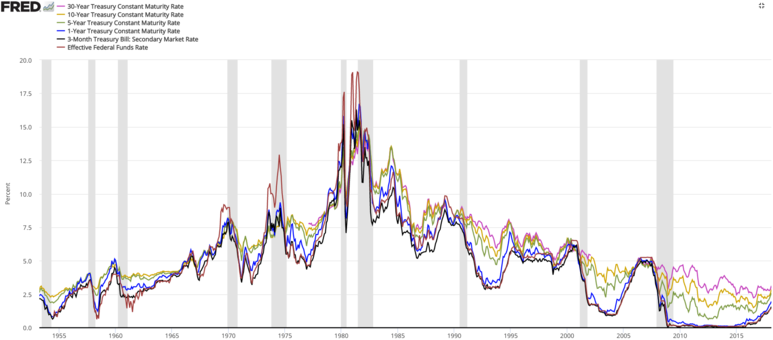 http://en.wikip edia.org/wiki/Federal_funds_rate 미국의 금리는 어떤 기준으로 볼 때 1982년경 정점을 찍은 것으로 보이며 그린스펀은 1987~2006년 금리 인하에 위치한 것 같습니다.