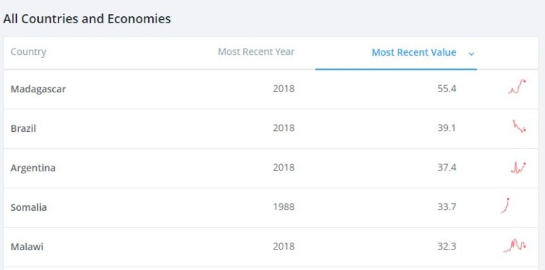 고금리 국가, https://data.worldbank.org/indicator/FR.INR.LEND?most_recent_value_desc=false 확실히 단언하기는 어렵지만 고금리 국가는 대체로 부유한 나라가 아닌 경우가 많이 보이고,