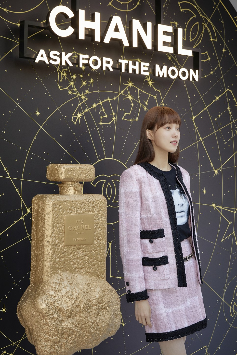 이선경은 샤넬 뷰티 엠베서더에 어울리는 핑크 트위드 셋업으로 등장하여 러블리한 매력을 더욱 돋보이게 하였습니다.