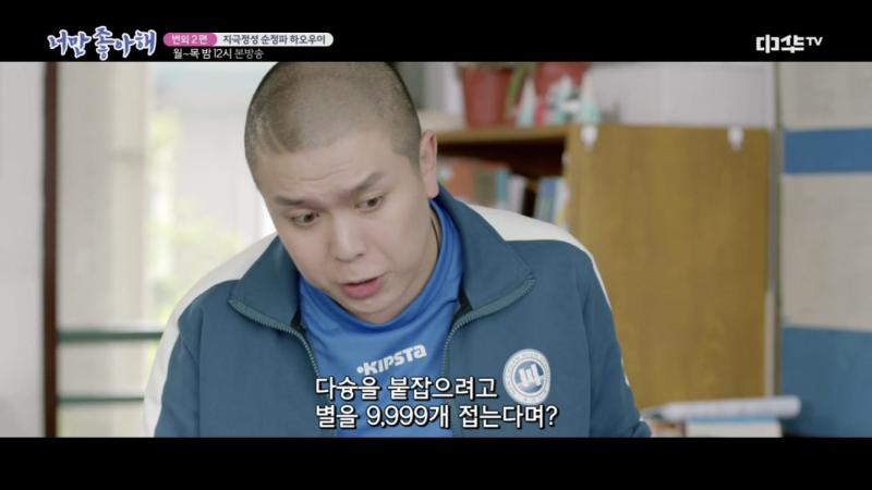 관조는 우이를 데리고 학창시절 거짓으로 고백했던 장소(분수대)로 데려와서 그때와 같은 댓글을 달아요. 3분 남았어 언제 말해? 나에게 고백하는 것” 우이는 무슨 쿵쿵이냐고 묻자 광차오는 대사가 예전과 다르다며 계속 그때 멘트를 날리며 마지막만 다르게 말합니다. “바보, 답이 다 나왔잖아…”나한테 시집가” 우이는 시간이 됐는데 분수쇼가 안 나오냐고 해서 광차오가 당신이 대답을 안 해서 그랬대요.그리고 또 다춘이를 잡기 위해 알려준 댓글을 똑같이 날립니다.옛날로 돌아간다고 해도 나는 너를 보는 순간 사랑에 빠진다…(생략)…나는 너의 것이야, 나의 1분 1초까지도. 네 앞에서 처음이자 마지막으로 무릎을 꿇을 거야.세상을 구할 생각으로 나를 인수해 줄래? 나랑 결혼하자.광차오는 한쪽 무릎을 꿇고 반지를 보여주고, 우이는 승낙합니다. 그러면 분수쇼가 시작됩니다.