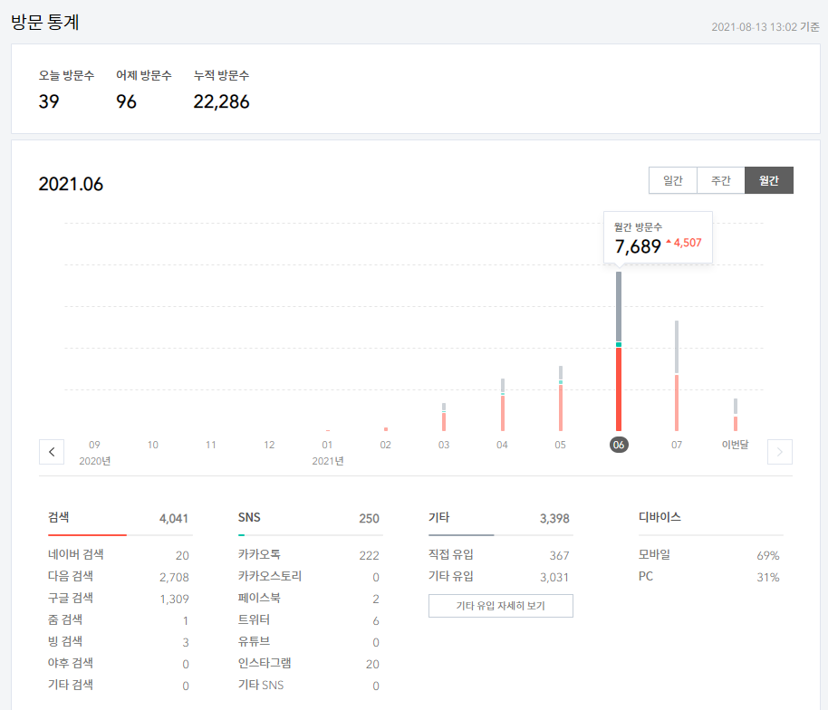 티스토리의 실제 수익을 알아보고 2021년 2월 본격적으로 티스토리 블로그를 시작한 Ace의 수익을 알아봅니다.우선 6월 유입 및 6월 애드센스 수익입니다.