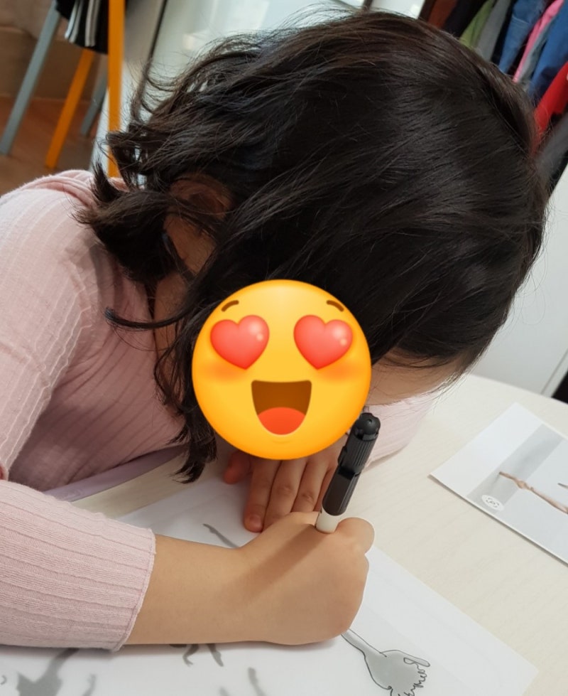 밑그림을 그리고 선생님과 만들기를 계속했다.
