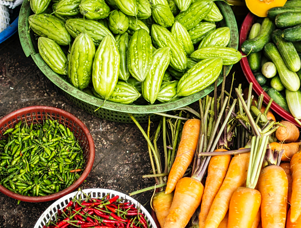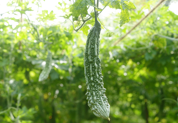 여주는 도깨비방망이처럼 가늘고 긴 모양을 하고 있습니다. 특유의 쓴맛이 강하기 때문에 ‘쓴오이’라고도 불립니다.특히 혈당 조절에 효능이 있기 때문에 당뇨병 환자분들이 관리를 위해 많이 찾아주시고요.