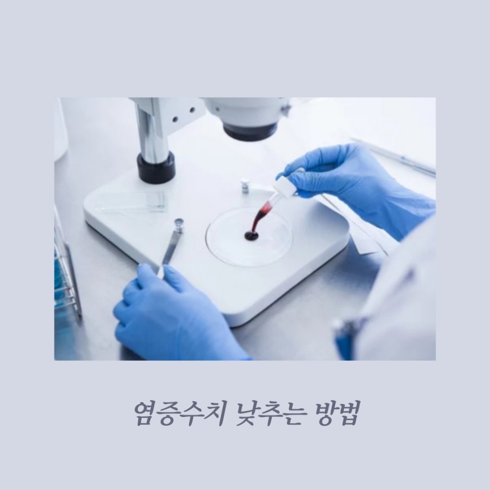 염증수치를 낮추는 방법 체내 염증수치가 높으면 여러 증상이 나타날 수 있으므로 피검사 후 조절을 위한 노력을 해야 하는데 특히 혈액검사상 염증수치가 높을 때는 식습관에 대한 조절은 필수라고 할 수 있습니다.염증 수치를 낮추는 음식으로는 1)토마토2)양파3)딸기4)강황5)녹차6)당근7)마늘8)콩9)브로콜리10)올리브유 등이 있는데, 이 외에 참고할 수 있는 음식은 아래와 같습니다.아보카도, 해바라기씨, 홍차, 들기름, 아마씨드, 깨, 케일, 시금치, 두부, 비트, 연어, 고등어, 꽁치, 멸치, 칡, 블루베리, 아사이베리, 귤, 오렌지, 가지, 카레, 도토리 곤약, 인삼, 아몬드, 알로에, 생강차, 표고버섯, 체리, 다시마, 미역, 김 등